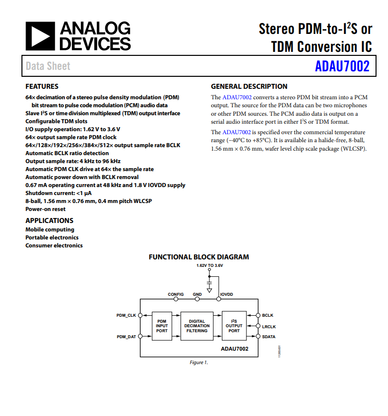 Features of ADAU7002ACBZ-RL